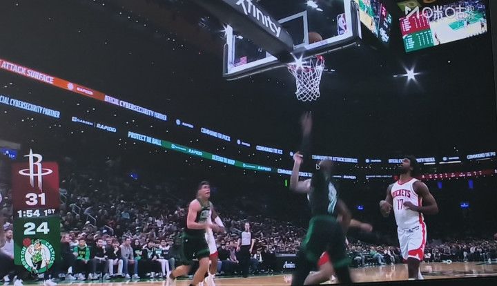 比赛开始后,双方打得行云流水,火箭队开局7:4领先,随后,凯尔特人追到7平,杰伦布朗强打得分,杜兰特突破中投命中,怀特三分命中,奥科吉连续底角三分命中。杜兰特投篮命中。小贾反击上篮得分。杰伦布朗突破上篮得分。杜兰特防守杰伦布朗犯规。杰伦布朗翻身跳投命中。亚当斯跟进上篮得分。凯尔特人连续三分命中。杜兰特中投命中。小贾翻身跳投命中。伊森反击三分命中。杰伦布朗突破上篮得分。杜兰特造犯规两罚全中。怀特盖掉了阿门的投篮。亚当斯抢到篮板后,阿门助攻亚当斯扣篮得分。杜兰特造犯规两罚全中。首节结束,火箭队37:24领先。