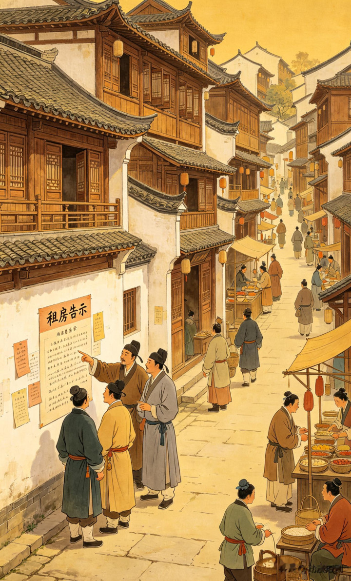 很多读书人进京赶考、商人做生意、百姓进城打工,全靠租房。